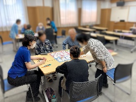 今年度2回目となる内原図書館との共催事業「うちとしょい~ばしょ」を開催しました。図書館からは「音読のすすめ」として、音読の効果に関するお話と体験会を実施。また、支援センターからは、9月の認知症月間に合わせ、新しくリニューアルした『認知症456(すごろく)』体験会を行いました。